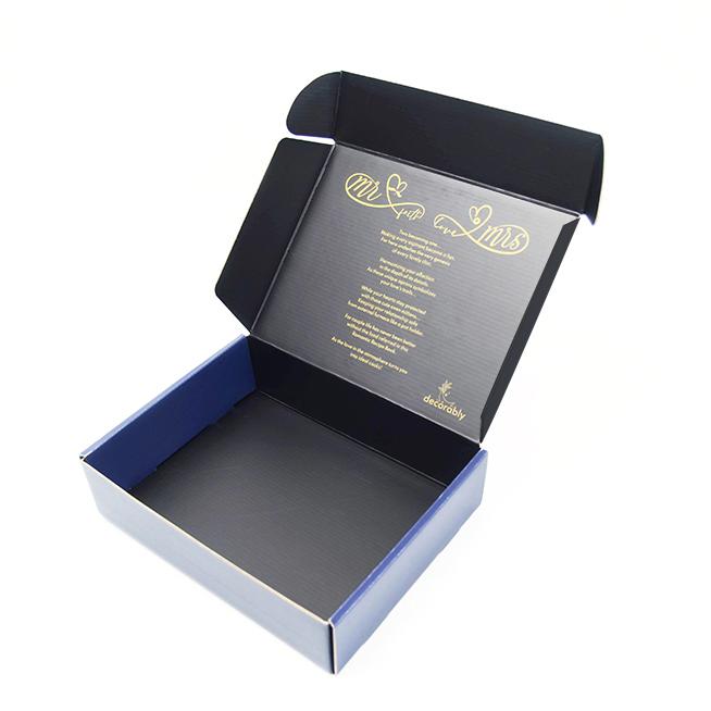 Stiker tahan lama Percetakan Custom Pesawat Kertas Pengiriman Kotak Kemasan Hadiah Bergelombang Daur Ulang Kotak Mailer Biru 9